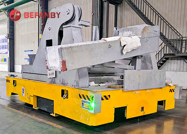 Бесследная пересадочная тележка имеет функцию автоматического наклона, что делает ее особенно подходящей для перевозки высокотемпературных и тяжелых материалов, таких как расплавленная сталь и ложки.Его конструкция обеспечивает безопасность и эффективность при обращении с материалами.